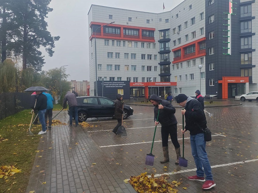 Совместными усилиями была приведена в порядок дворовая территория поликлиники.
