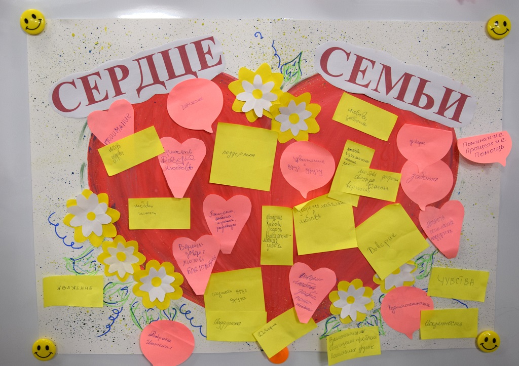 В завершение встречи молодые люди «создали» интерактивный плакат «Сердце семьи», где каждый мог высказаться о составляющих крепкой семьи.