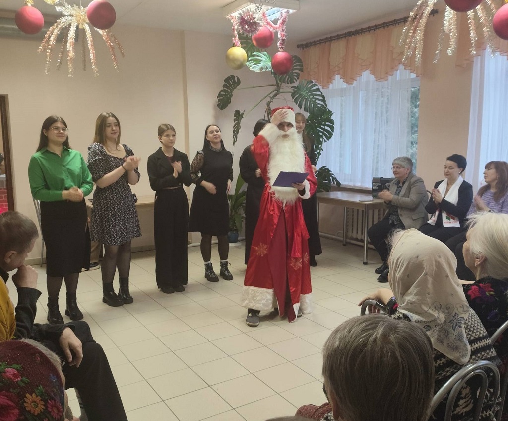 В рамках акции «От всей души» будущие медики поздравили с наступающим Новым годом и Рождеством постояльцев отделения, подготовив праздничный концерт. Выступление наполнило зал положительными эмоциями, создало атмосферу праздника и подарило незабываемые впечатления.