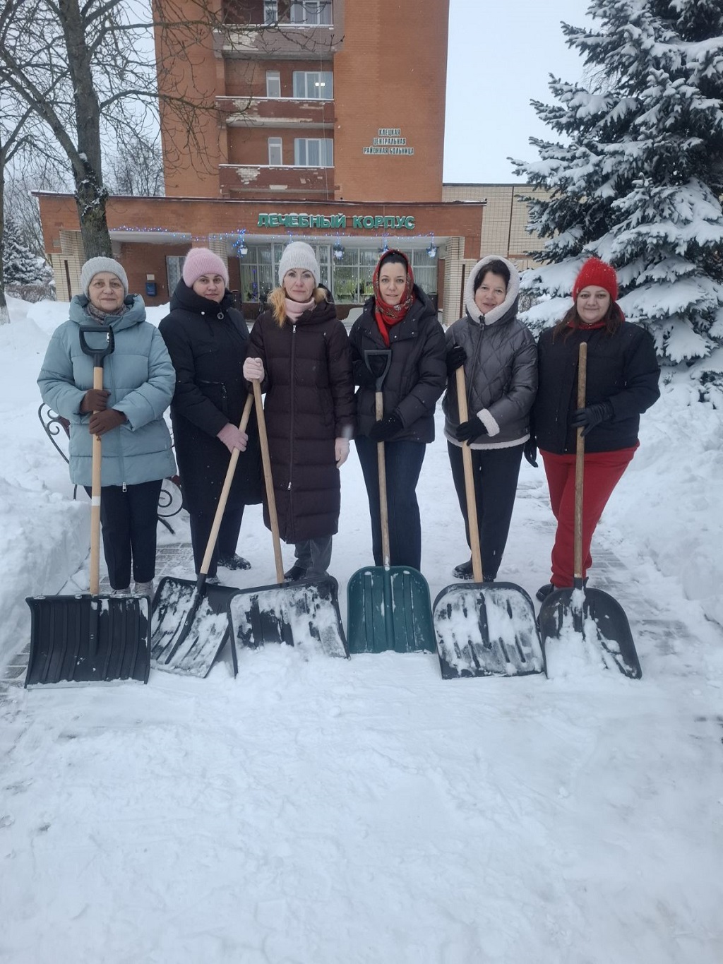 С раннего субботнего утра территория больницы ожила. Работники, отложив свои домашние дела, сообща принялись расчищать дорожки, подходы к отделениям. Работа кипела.