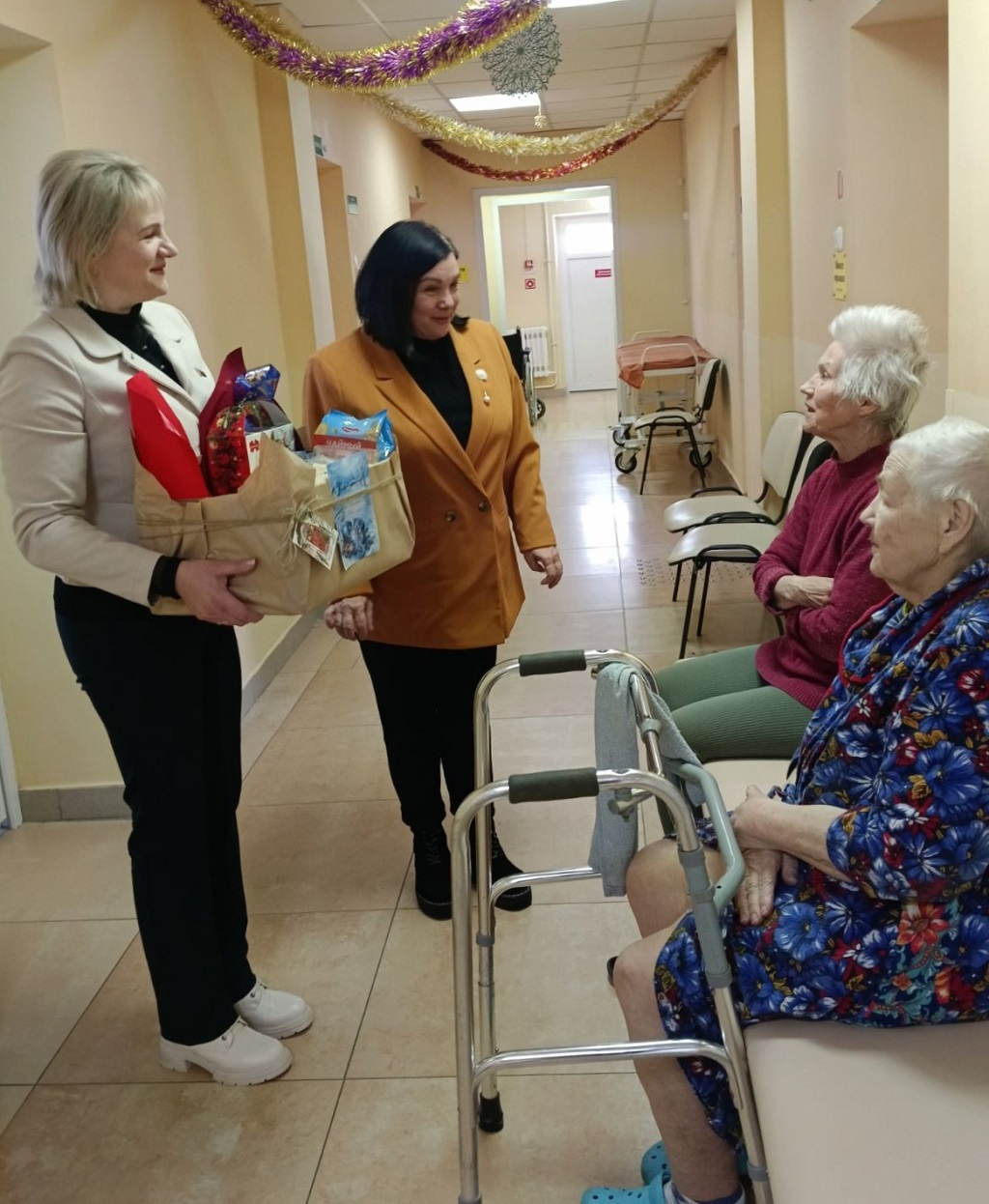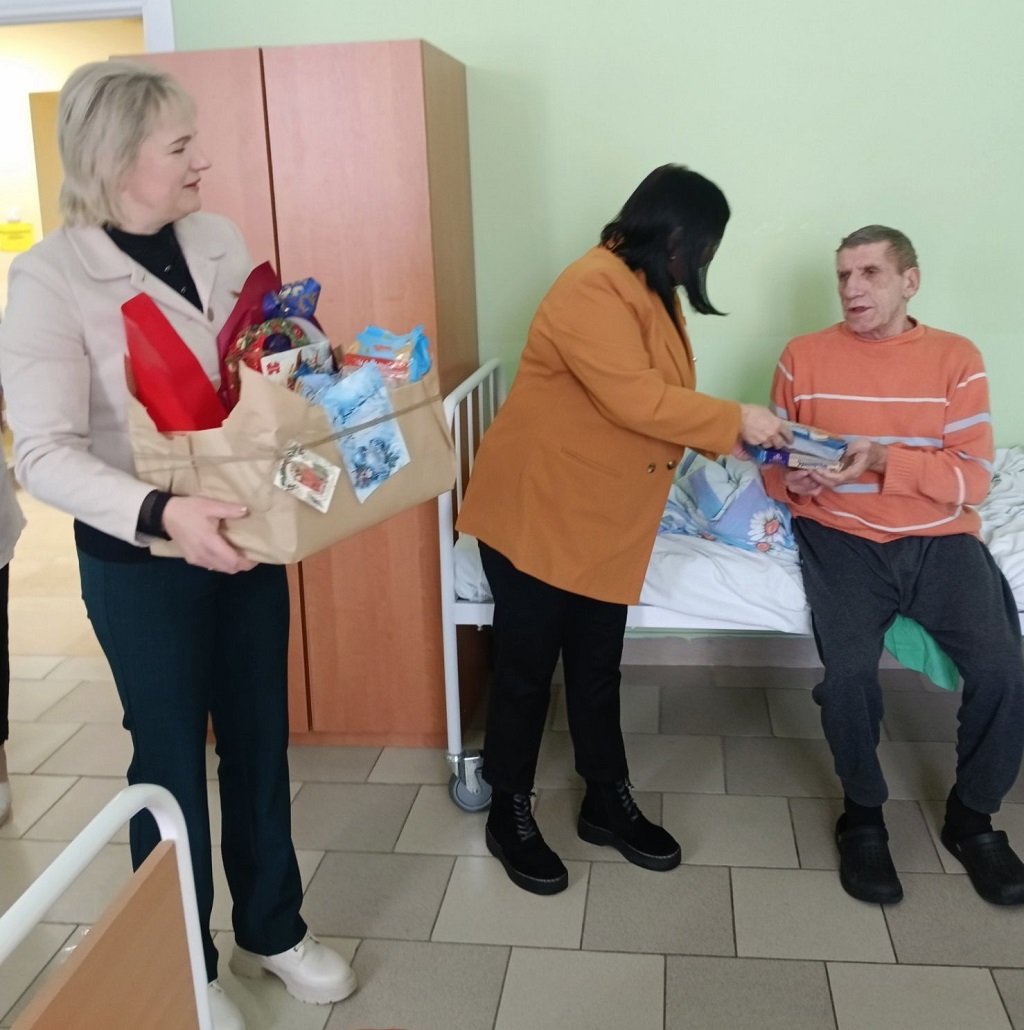 Теплые слова и поздравления с Рождеством, наборы сладостей, подарили пациентам им частицу праздничного настроения. Медицинский персонал больницы делает все возможное для Рождественского настроения пациентов – нарядное новогоднее украшение комнат и фойе.
