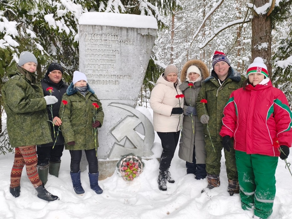 Они возложили цветы к памятному знаку 225-ой партизанской бригады имени А. В. Суворова, которая была создана в декабре 1942 года и активно действовала в Слуцком, Гресском и прилегающих районах Минской области.