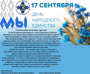 День народного единства – один из самых молодых праздников суверенной Беларуси, который символизирует национальную и территориальную целостность Беларуси, подчеркивает весомый исторический фундамент современной государственности. Это символ исторического оформления белорусской нации, искреннего стремления белорусов жить одной семьей!