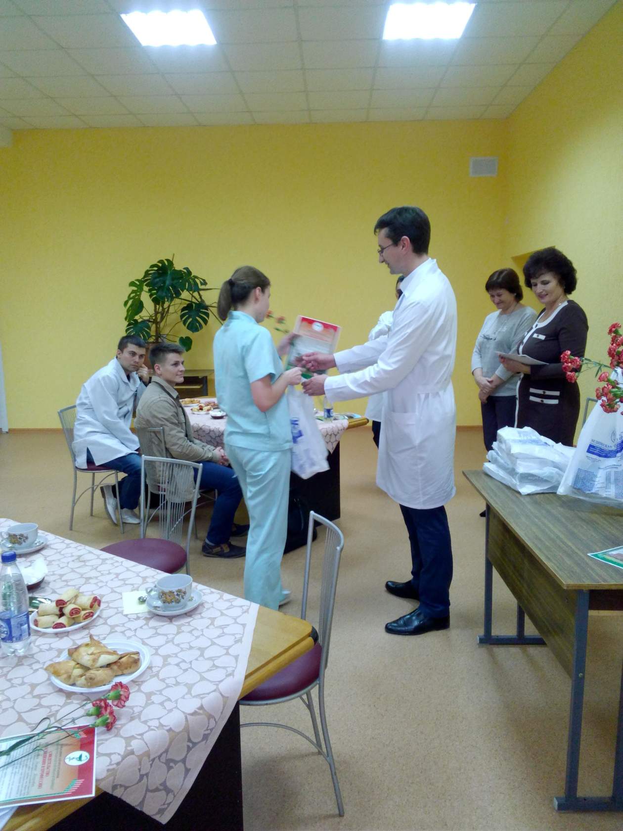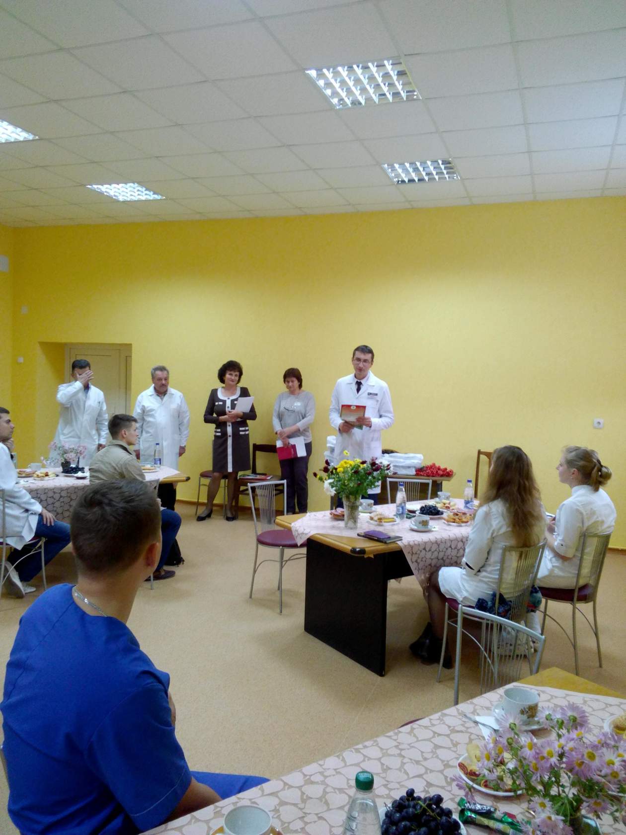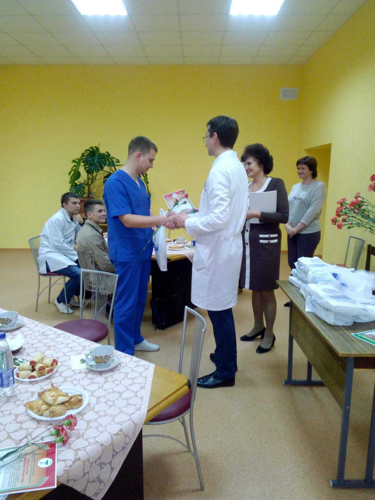Позже состоялся диалог молодых специалистов, главного врача Александра Дрозда и председателя профкома Елены Тилюпо. Во время встречи наградили почетной грамотой объединенной профсоюзной организации наставника, спортсменку и замечательного доктора Дорош Марину Владимировну и благодарностью объединенной профсоюзной организации молодого специалиста, врача педиатра и победителя (3-е место) районного осеннего кросса Свито Ольгу Александровну.