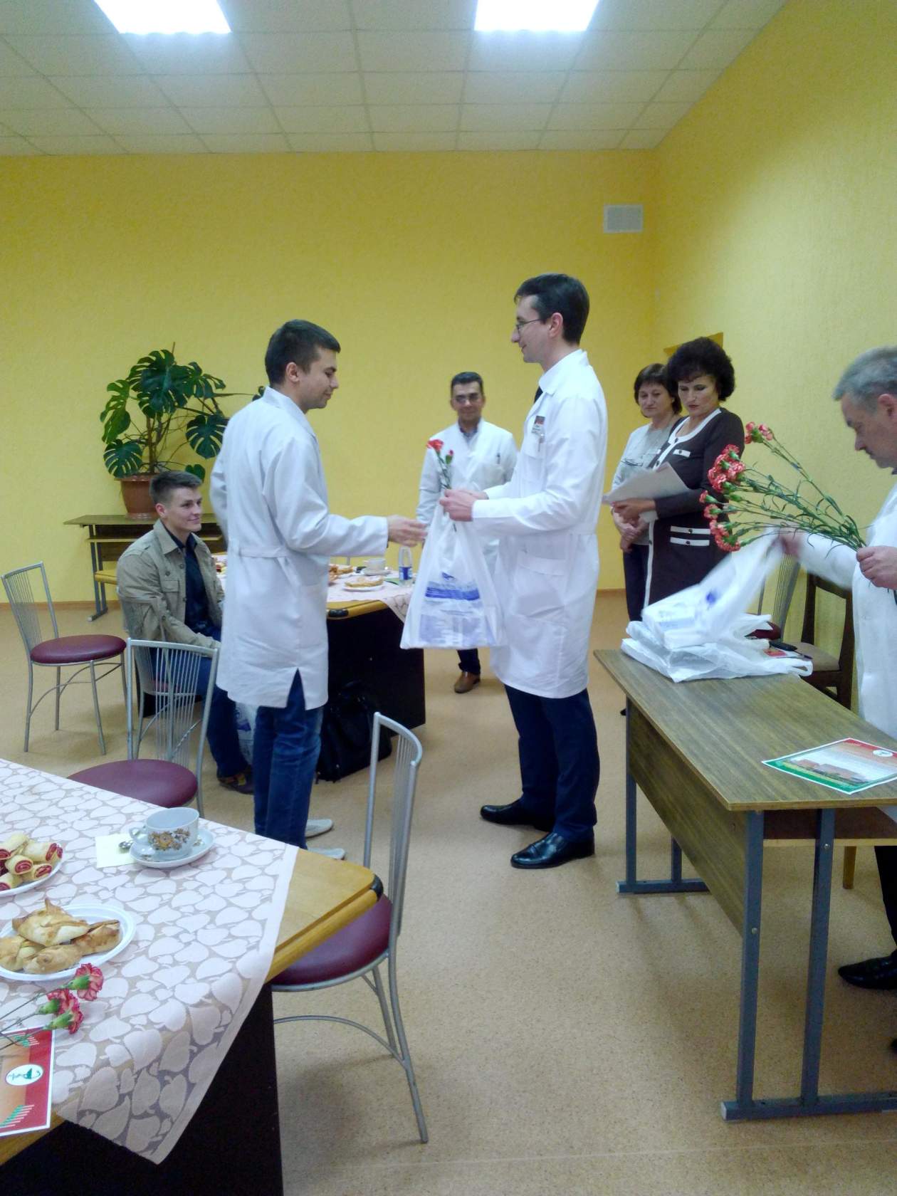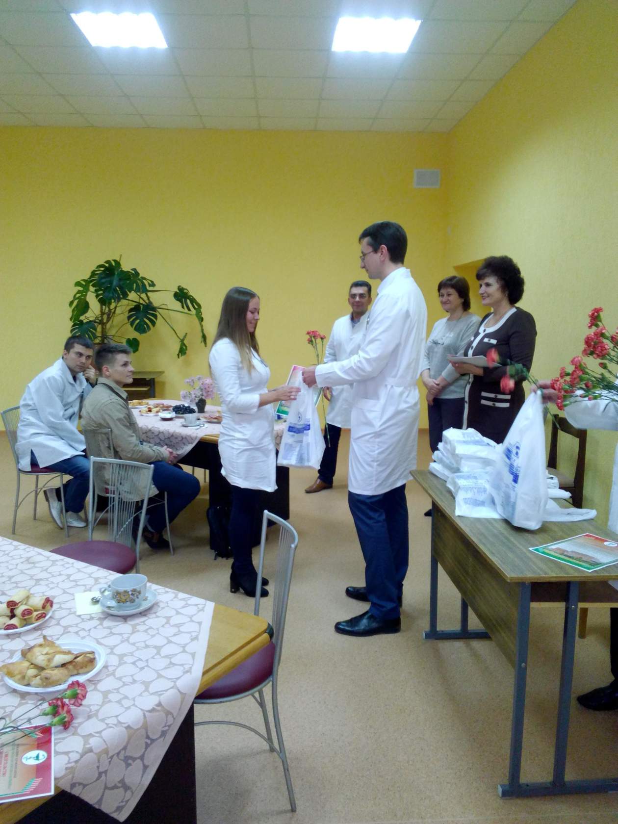 Вечер чествования прошел в конце октября в неформальной обстановке. Познакомиться, поговорить о планах, задумках и начинаниях, а также волнующих сегодня молодёжь проблемах - тёплая дружеская атмосфера встречи как нельзя лучше этому способствовала. Александр Линкевич, главный врач, от имени администрации учреждения поздравил молодых специалистов и обратился с напутственным словом: «Дорогие коллеги, обращаясь сегодня к вам, мы хотим не только поддержать «первые шаги в профессии», но и уверить, что «дорогу осилит идущий». Хочется пожелать Вам быть активными, делиться своим мнением, говорить о том, в чём бы вы хотели принять участие, в какой помощи нуждаетесь, а, возможно, каким опытом хотели бы поделиться сами. О возможности профессионального и карьерного роста присутствующим рассказала начальник отдела кадров Галина Живицкая. Вопросы, касающиеся улучшения жилищных условий, затронул в своём выступлении председатель профсоюзного комитета Вячеслав Аскабович. О надбавках к заработной плате и льготах по налогам рассказала начальник планово-экономического отдела Марина Цвирко. Владимир Наврась, председатель совета наставников, поздравил молодых специалистов со вступлением в профессию и выразил надежду, что молодые специалисты, пришедшие в центральную районную больницу по зову души и сердца не будут разочарованы в своем выборе и станут достойными приемниками своих учителей! Молодым специалистам пожелали смелых творческих решений, взаимопонимания и удачи, жизненного тепла и света и вручили памятные сувениры.