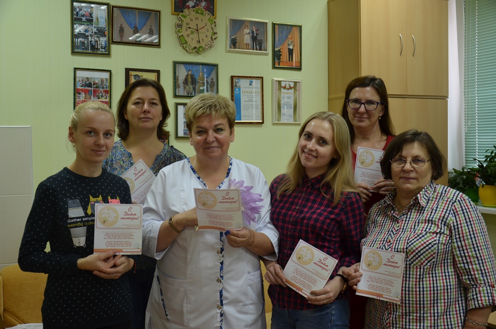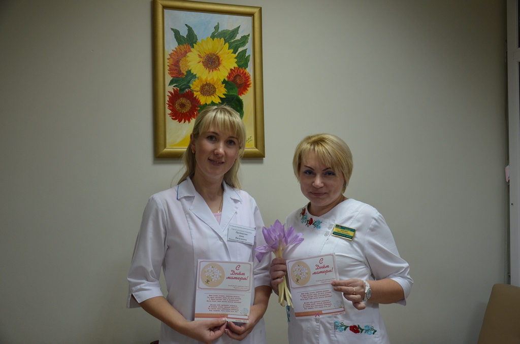 Председатель первичной профсоюзной организации Валентина Ивашко на общей пятиминутке традиционно поздравила всех женщин, медицинских сестёр (старших), а в их лице весь женский коллектив отделений с таким праздником и вручила всем цветы – как символ красоты, почитания и добра. Был продемонстрирован фильм о матерях.