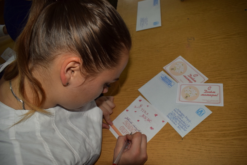 Ребята, проживающие в общежитии колледжа, с удовольствием присоединились к акции и вместе с воспитателями общежития написали письма своим мамам и бабушкам.