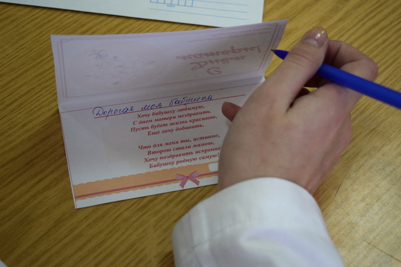 В колледже обучаются также и учащиеся-сироты, которых воспитывают приемные мамы или бабушки. Ребята также отправили открытки своим родным, а специально для бабушек были придуманы стихи и распечатаны открытки.