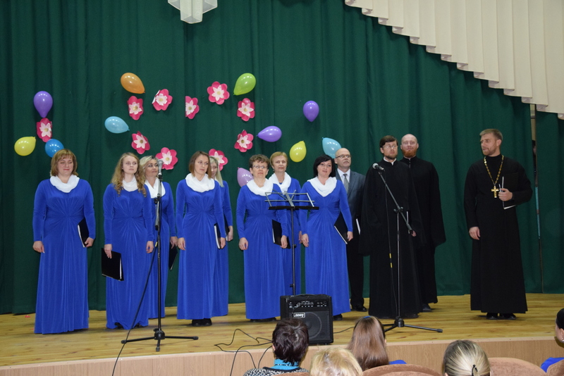К собравшимся в зале обратился Благочинный 1-го Борисовского церковного округа, настоятель прихода храма Рождества Христова протоиерей Александр Вербило. С музыкальным поздравлением выступил народный камерный хор «Преображение».