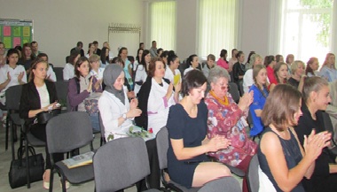 Затем выступила Инна Кузьмицкая, главный специалист Минского областного комитета Белорусского профсоюза работников здравоохранения. Она отметила важные стороны деятельности профсоюза работников здравоохранения. Презентационно представила работу Минской областной организации Белорусского профсоюза работников здравоохранения, рассказала о молодежной политике и о проектах, реализуемых Минским областным комитетом и Молодежным Советом- в частности, «Активность – наша перспектива» и «Молодежный маршрут добрых дел». Затем прошла демонстрация видеоролика «О профсоюзе…», занявшего призовое место в конкурсе Минского областного объединения профсоюзов.