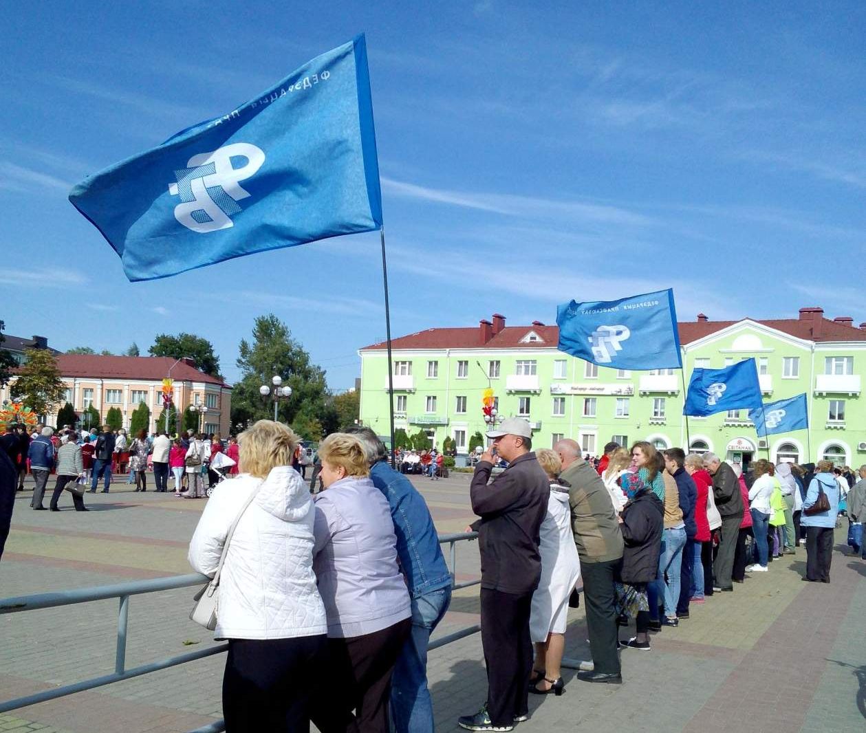 Город преобразился - яркие букеты цветов, разноцветные шары, голубые флаги с логотипом ФПБ, приветливые улыбки горожан. На центральную площадь пришли и лучшие труженики района, которые сеют, пашут, лечат, воспитывают детей и беспокоятся о культурном досуге. Талантливые певцы, музыканты и танцоры акции «Мы – вместе!» превратили концерт в незабываемое шоу.